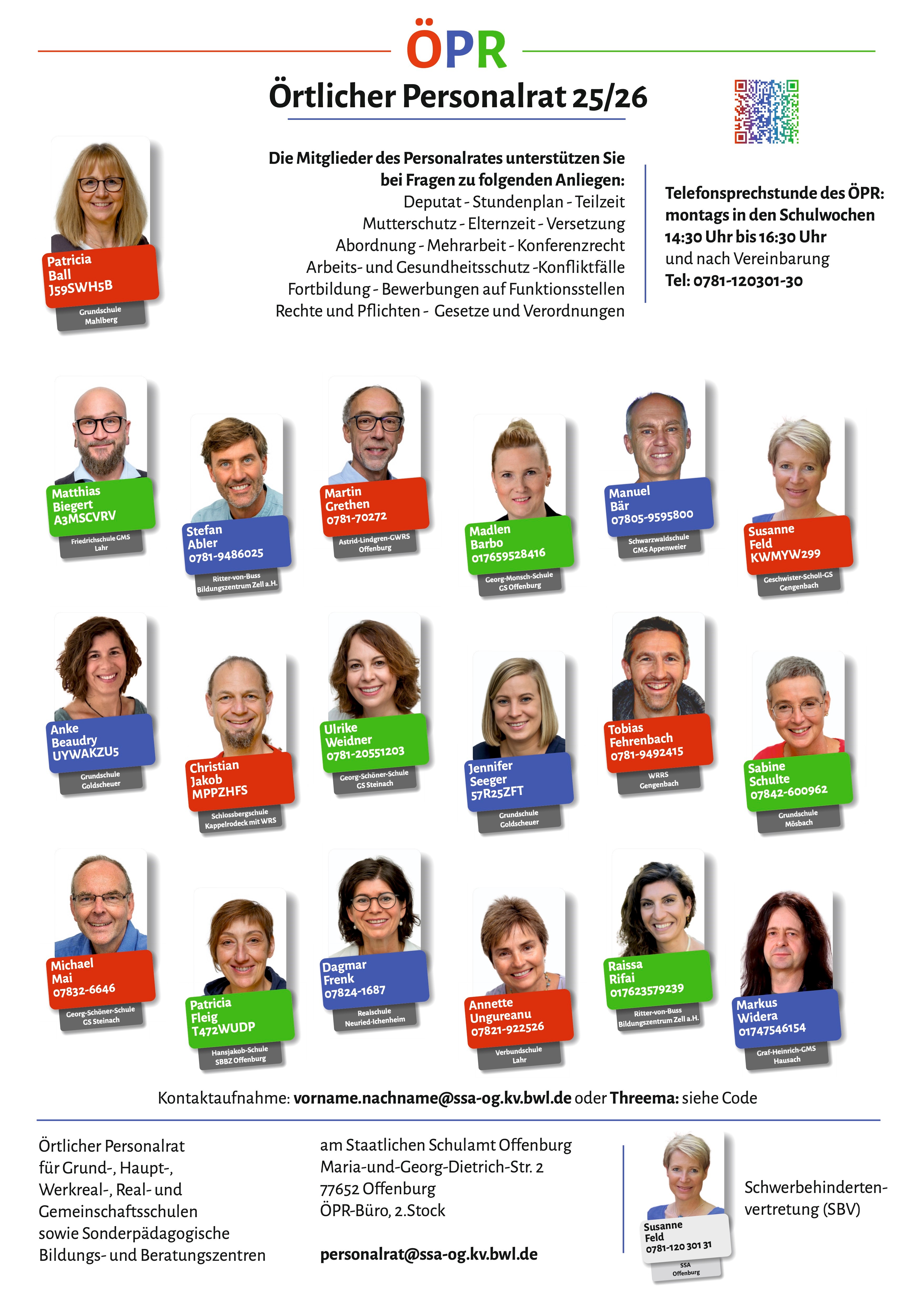 Darüber hinaus können Sie jederzeit Beratung von allen ÖPR-Mitgliedern erhalten.